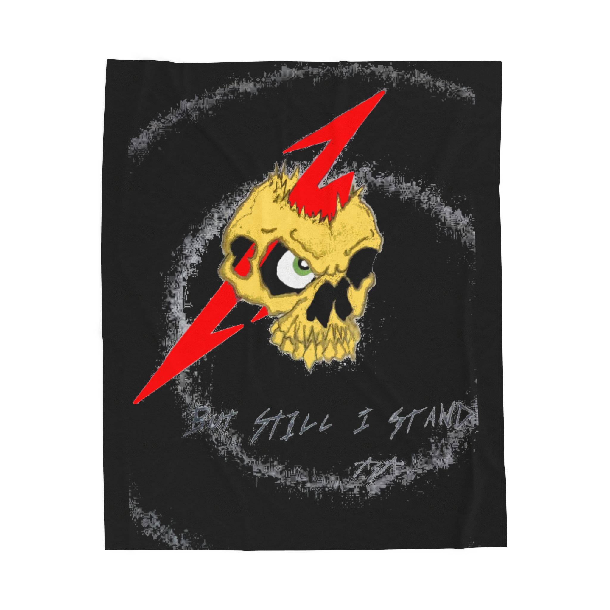 This velveteen plush blanket wraps you in bold attitude and cozy warmth. The fabric is sumptuously soft with a medium-heavy weight that drapes easily over knees or shoulders, and the vivid print on one side holds its color and detail wash after wash. Tuck it over your lap during late-night listening sessions, keep it on the couch to punctuate a moody living room, or pull it around your shoulders after a show — it settles you into a small, defiant comfort without losing edge.