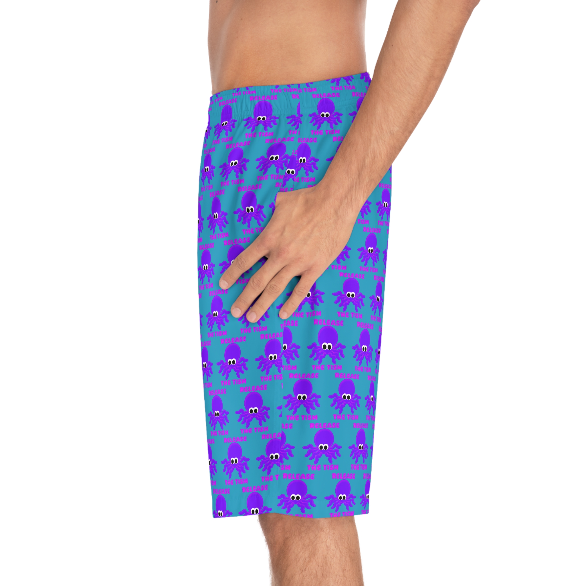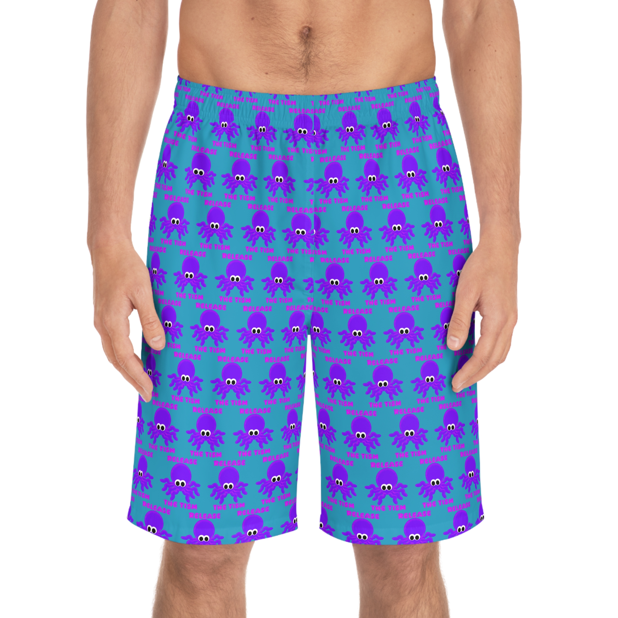 These lightweight board shorts bring a playful, ocean‑side vibe to active days at the beach or pool. The all‑over print of cheerful Kuthulu icons on a bright teal background adds a fun, quirky energy — the kind that makes you grin before the waves even hit. Cut in a regular, relaxed fit with an elastic waistband and drawstring, they move with you whether you’re paddling, walking the pier, or lounging on a towel. Pockets keep small essentials handy, and the quick‑dry polyester fabric means less time damp and more time enjoying the sun. Wear them with flip‑flops and a relaxed tee for easy summer outings or stash them for a spontaneous surf session.