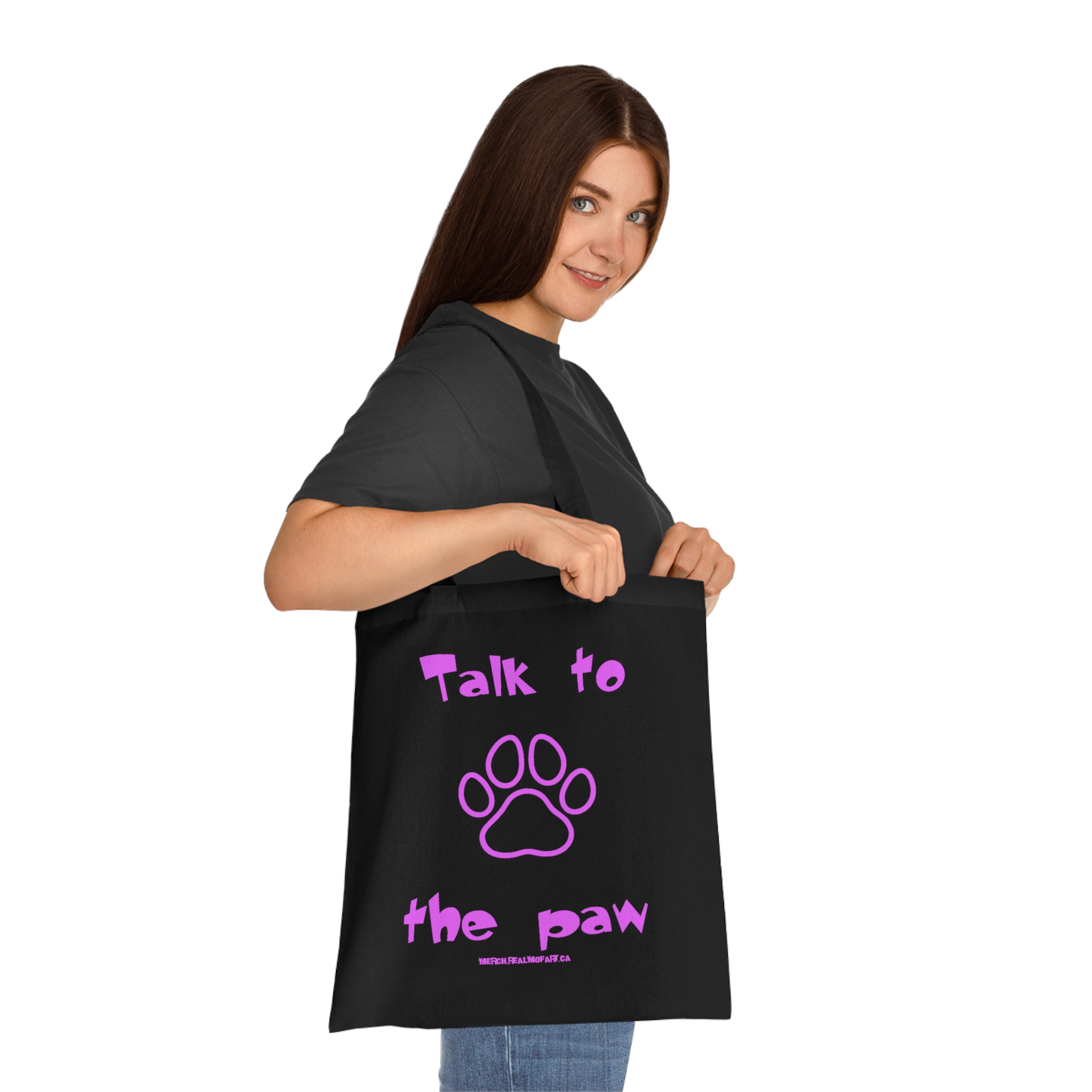 Talk to the Paw Tote Bag — Cute Purple Paw Print Cotton Shopper for Dog & Cat Lovers