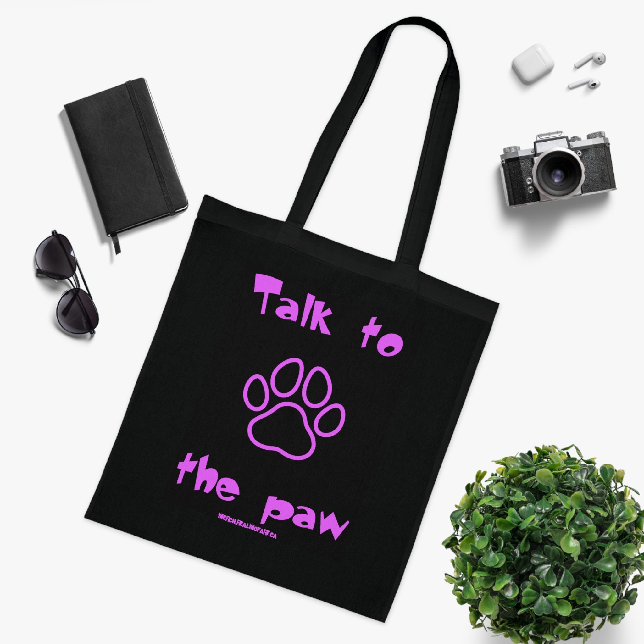 Carry a little attitude and a lot of heart with this lightweight cotton tote. The bold paw graphic and playful “Talk to the paw” phrase sit front-and-center in vivid color, turning everyday errands into a small moment of self-expression. The thin, durable fabric keeps the bag easy to fold and stash, while reinforced handle stitching gives extra confidence when you pack it full. Flat corners and a clean silhouette make it sit neatly at your side or over your shoulder. Whether you’re headed to the market, the park with your pup, or a casual meetup with friends, this tote reads like a wink — fun, unapologetic, and built to last.