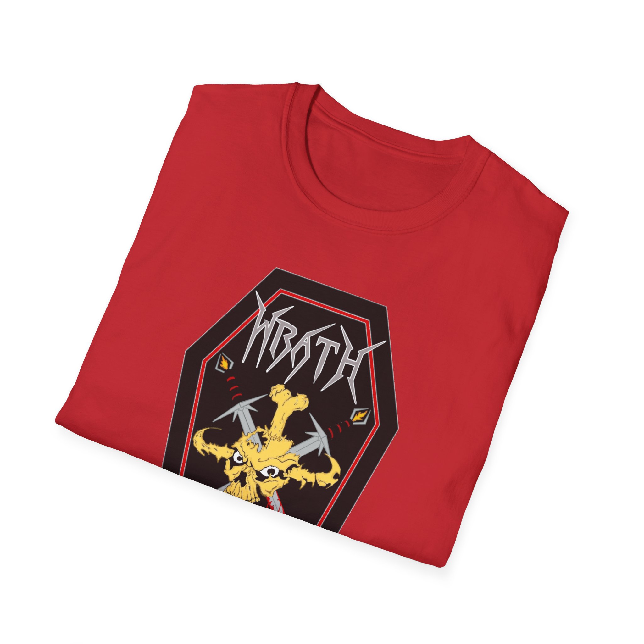 This crew-neck tee carries a dark, tongue-in-cheek energy — a coffin-shaped panel frames a distressed sigil and skull motif rendered in bold black, red, and gold. The slim-but-classic silhouette sits lightly on the body, letting the graphic take center stage without feeling heavy. Wear it to gritty gigs, late-night pub crawls, or while flipping through vinyl in a dim room: it reads like a wearable poster for someone who prefers atmosphere over flash. The soft ring-spun cotton and tear-away label keep it comfortable during all-night shows, and the reinforced neckline and shoulder tape mean the shirt keeps its shape through repeat wear. If you collect band tees, love underground art, or lean into macabre humor, this tee folds seamlessly into that wardrobe and the rituals that come with it.